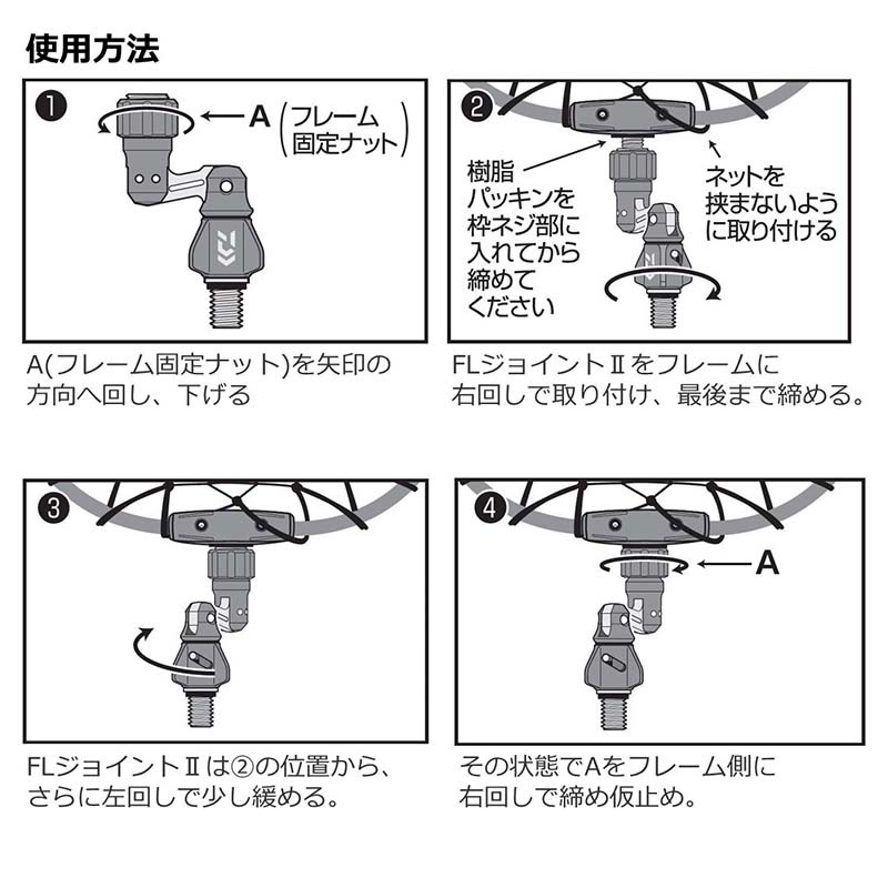 簡易ロック構造の為、タモ網のばたつきを防止できる。