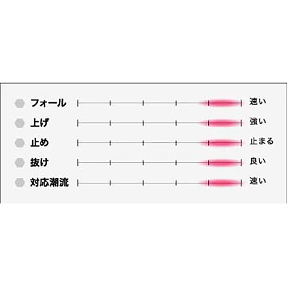 二枚潮下での、メリハリのある小気味よいアクションと、しっかりとしたフォール姿勢をテーマに開発した商品。